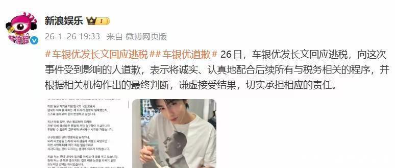 这则新闻出现的时候很多粉丝还抱有怀疑态度,没想到发酵了一段时间后,车银优发文回应了此事。