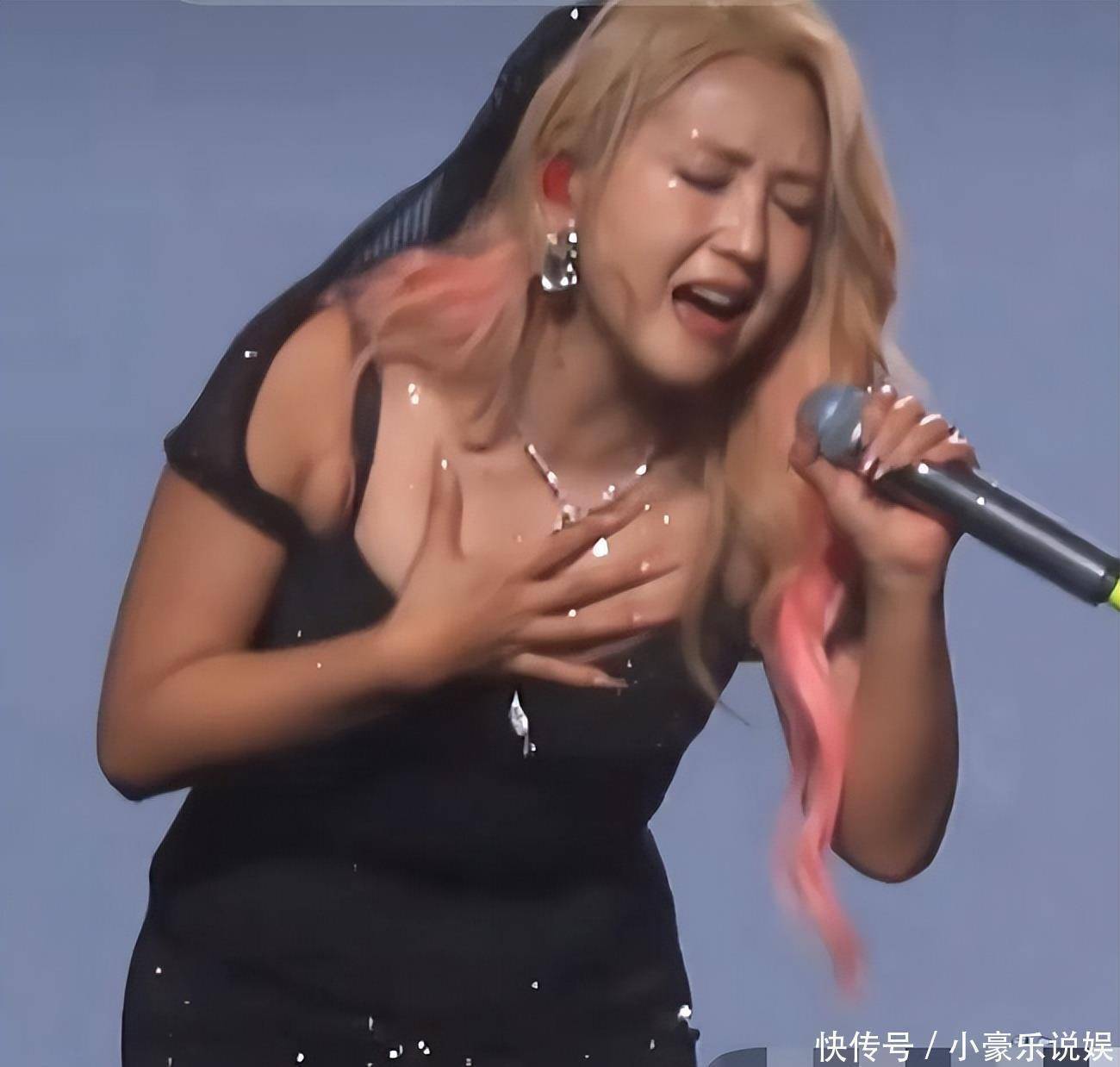 尽管歌声依旧打动人心,但观众们明显注意到,何洁的身材已严重走形——贴身礼服凸显出腹部的赘肉,粗壮的手臂和勒出的副乳令人尴尬。偏黄暗沉的肤色让她显得疲惫不堪,几乎看不出明星光环。
